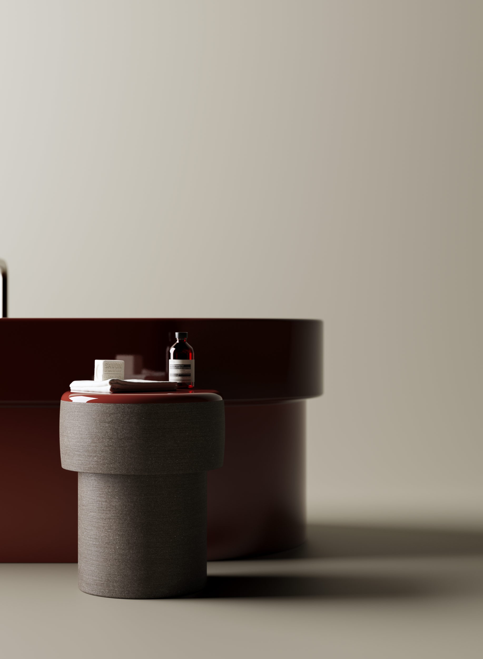 The collection is now enriched with Cenote washbasins, offered in the same finish as the bathtub and complemented by a range of clay accessories—a seat, a small table, and a tray—conceived as silent presences, distinguished by the same attention to form and detail.